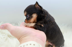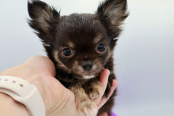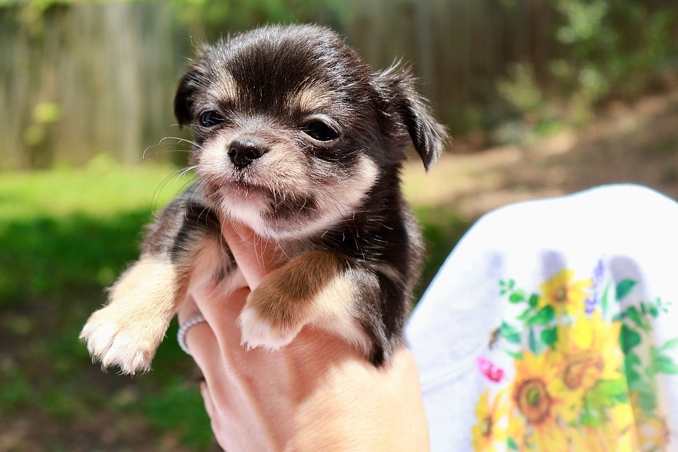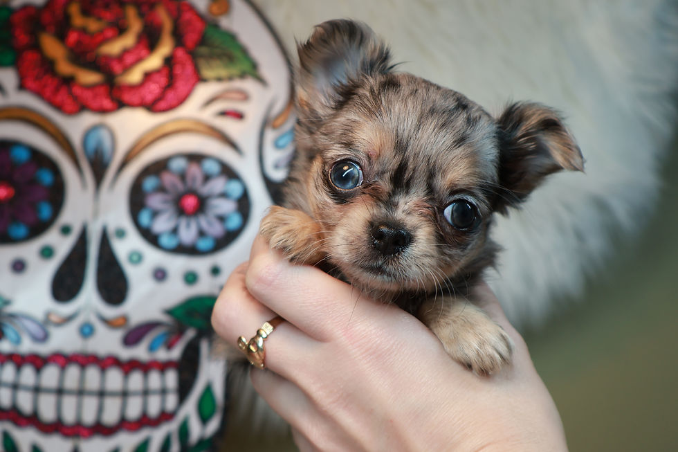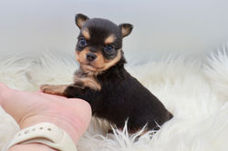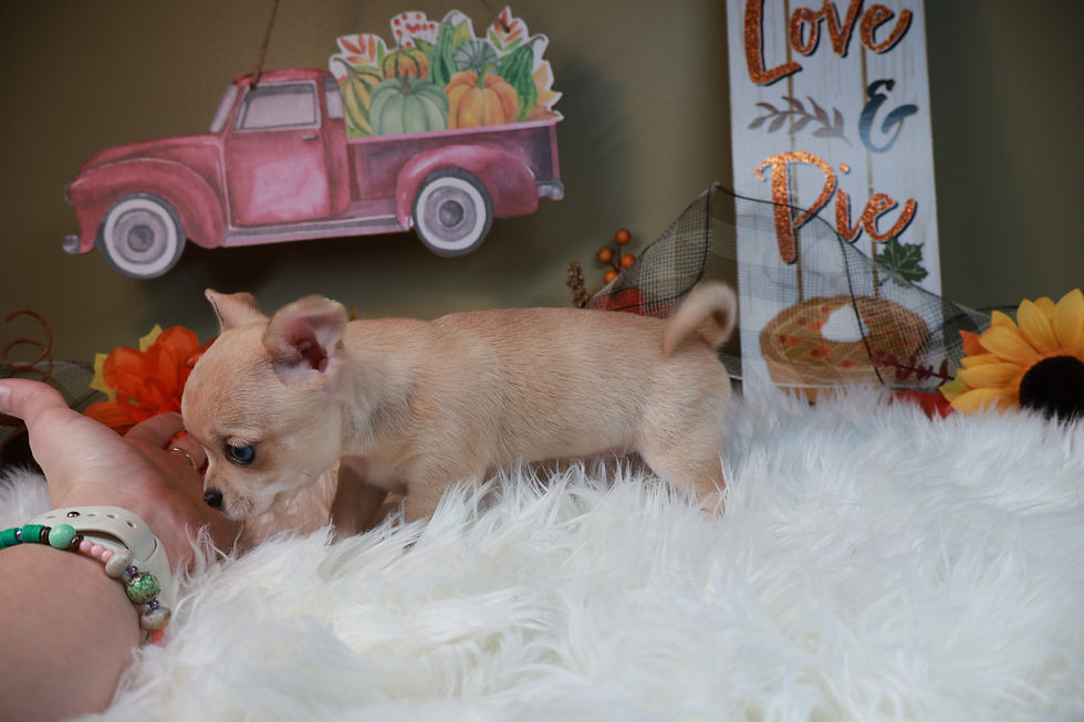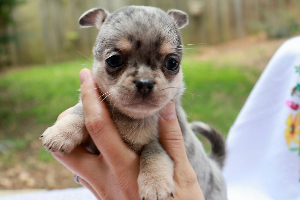 Due to her bobtail she is at a reduced price. Bobtails in the Chihuahua Standard are technically a "defect," albeit the cutest one I've ever seen. Perfectly healthy just has a naturally bobbed tail. Happy day for her future parents!